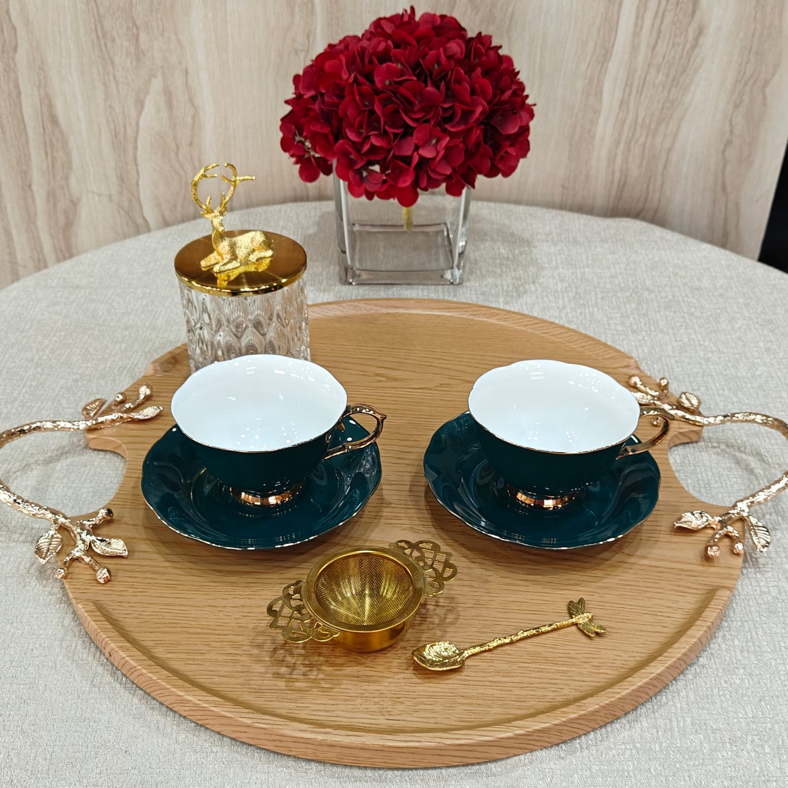 This set includes 6 colorful cups and saucers, perfect for entertaining or everyday use. Made with high-quality materials, these cups and saucers provide a stylish touch to any dining experience. Add a touch of elegance to your table with this vibrant green set.