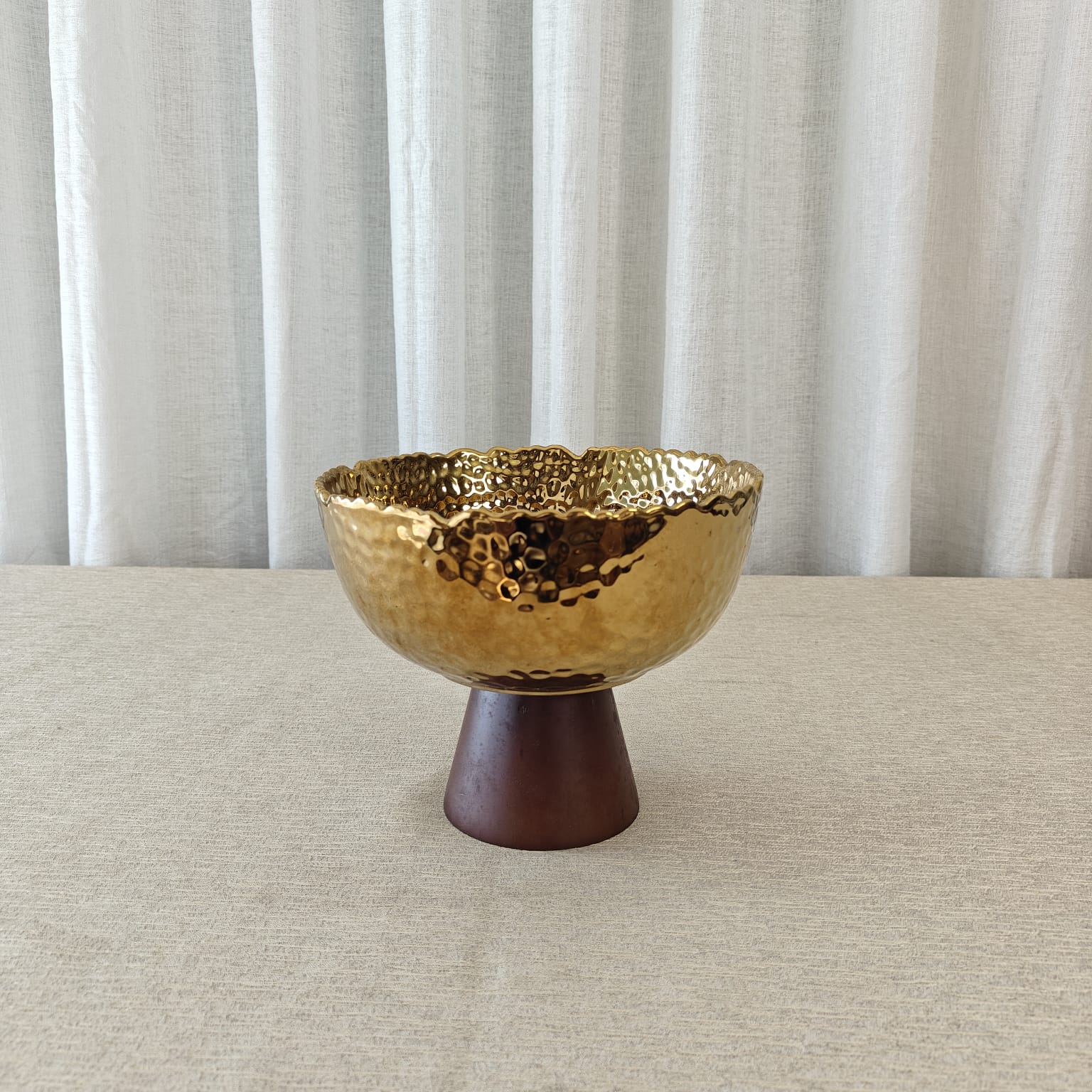 A durable porcelain bowl ideal for serving a variety of dishes with elegance and ease.Wooden base