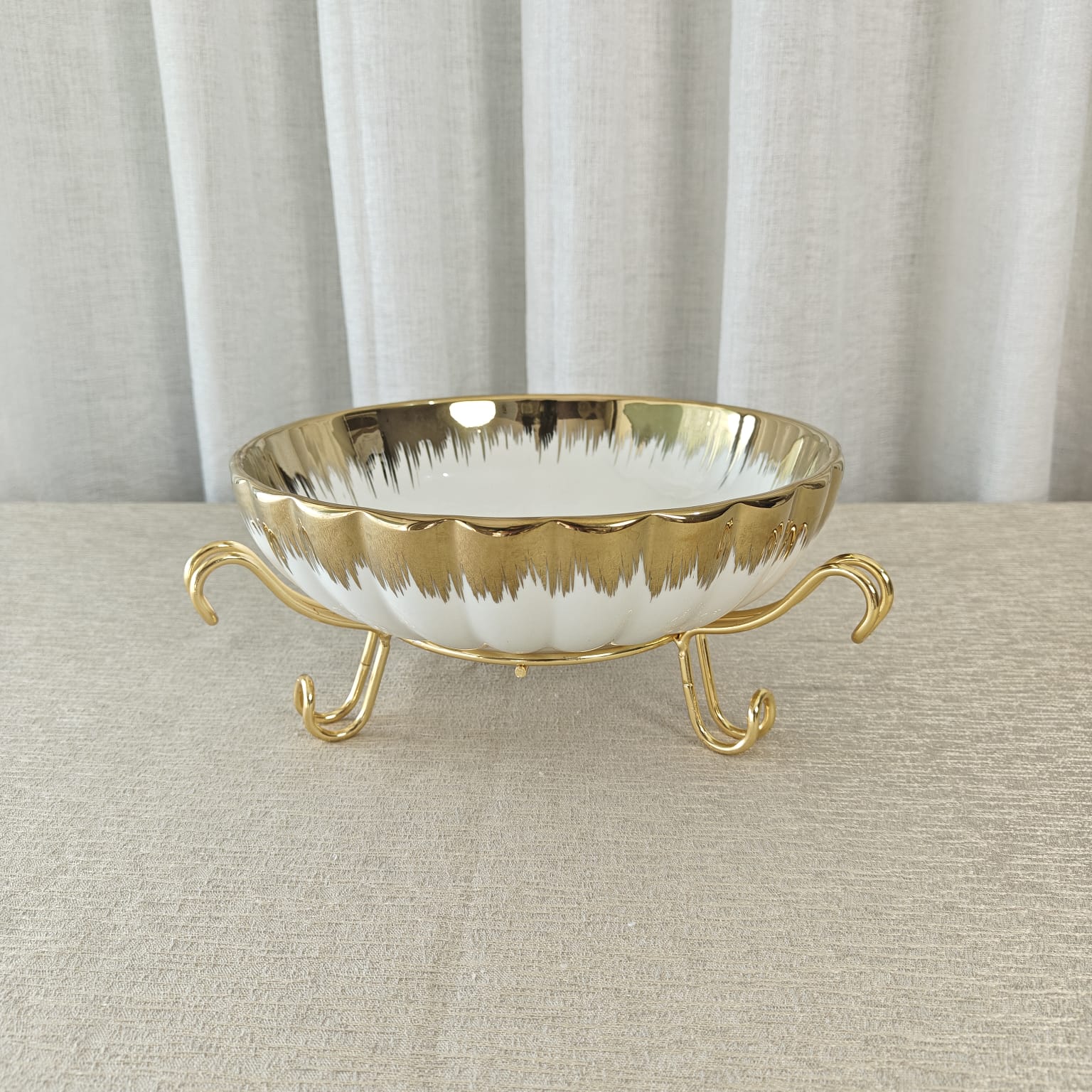 This elegant serving bowl set features two sizes—8 inches and 10 inches—crafted in a pristine white finish highlighted by a luxurious gold stand. The gold-toned stand not only enhances stability but also adds a refined touch to your table setting, making it ideal for both everyday use and special occasions. Its design balances functionality with sophistication, elevating your serving experience.