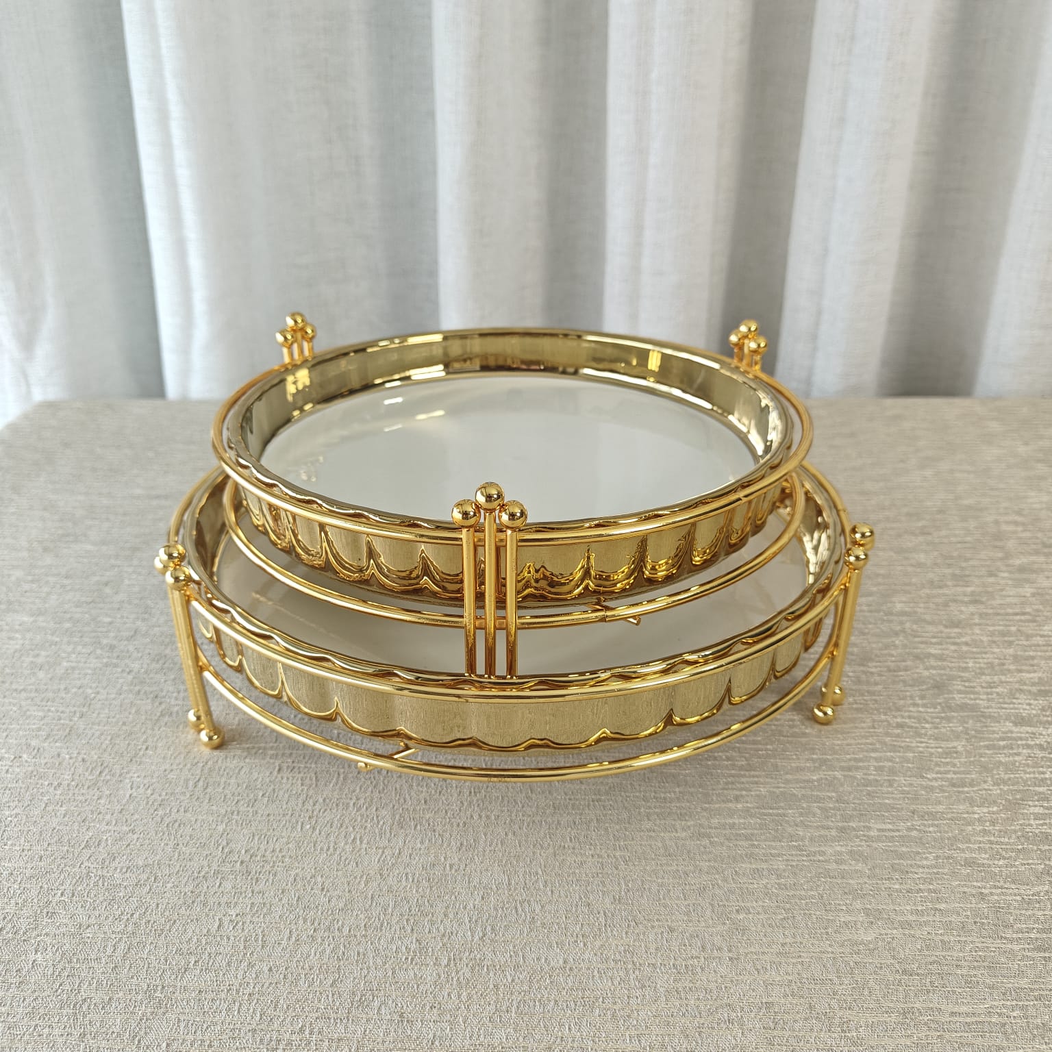 Elevate your dining experience with this elegant Serving Platter featuring a sleek white plate complemented by a stylish gold-tone stand. This combination not only adds a sophisticated touch to your table but also provides stable support for presenting appetizers, desserts, or main courses with ease and grace. Ideal for both everyday use and special occasions, it merges functionality with refined design.