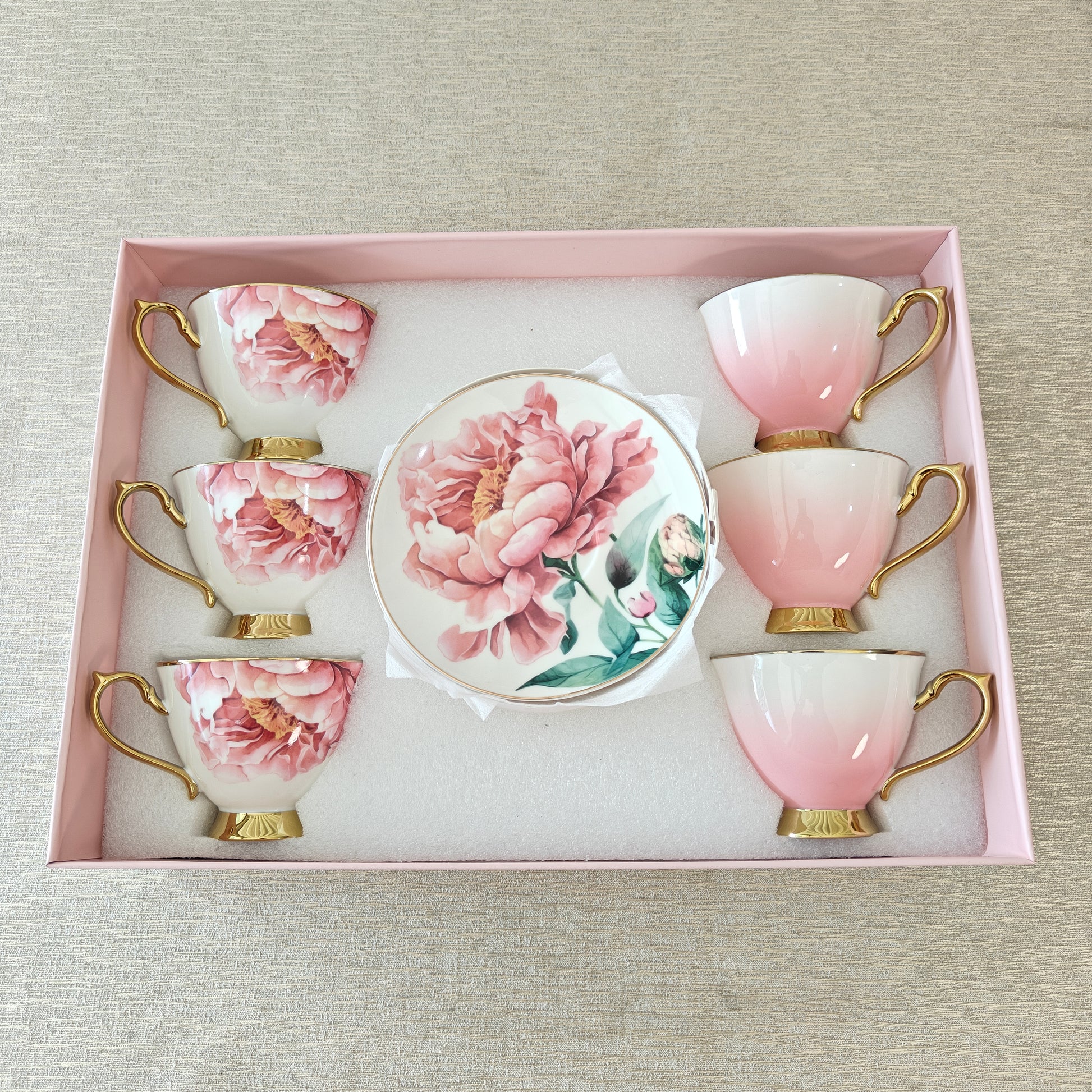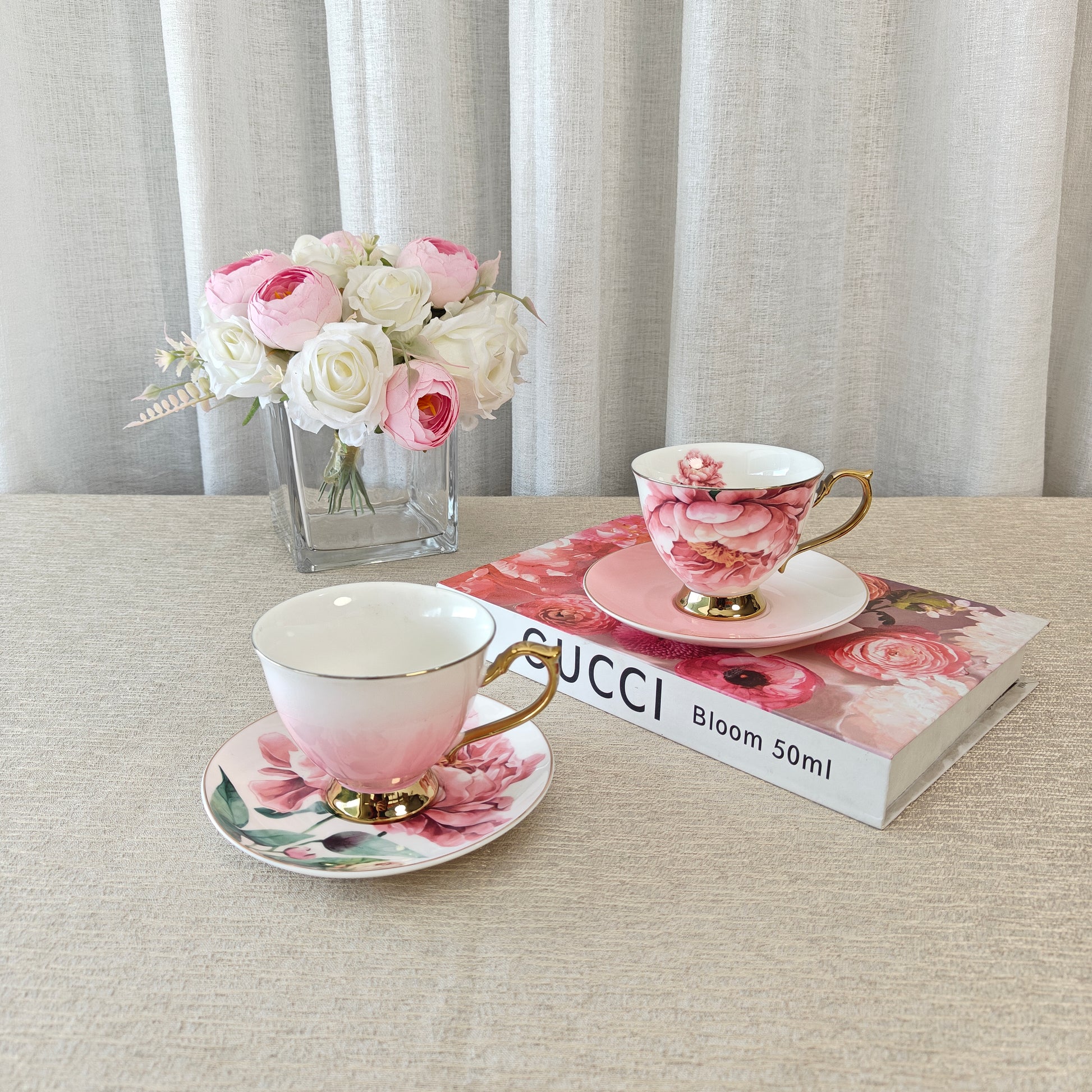 This pink floral cups and saucers set adds a touch of elegance to any tea party or morning routine. Made with high-quality materials, this set is both beautiful and durable.